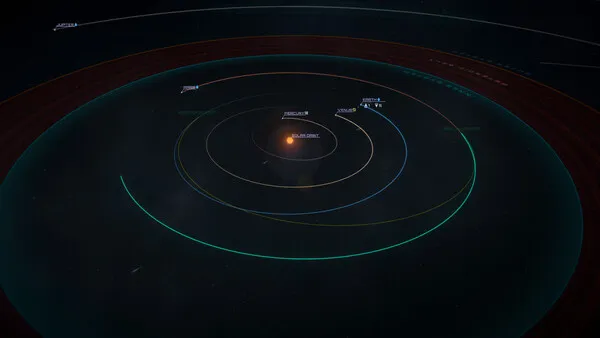 Optimize the costs and schedule of the flights. Mind that each object is in constant motion, so exact planning is crucial. Utilize the gravity effects and slingshot your rockets further beyond.