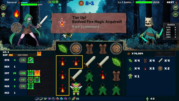 • Earn gold from battles to purchase useful items in the shop, then equip her before venturing into the forest to gain an advantage.