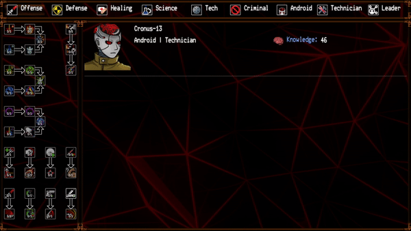 ; skills and stat increases are managed by Knowledge Points acquired from battle.