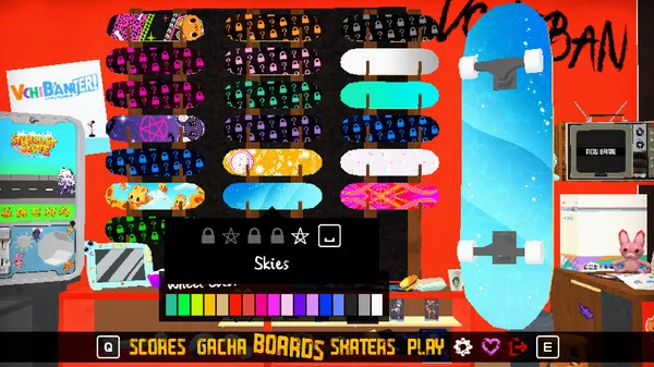 Pick from 4 different skaters of VchiBan with their own unique powers and abilities to find the shredding style that grooves with you~!
