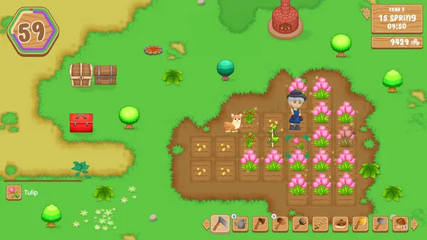 As you level up your farm, you unlock skill points that help you get different bonuses that will be useful throughout your adventure. You can increase the length of the day, have more space in your inventory and improve the quality of your crops.