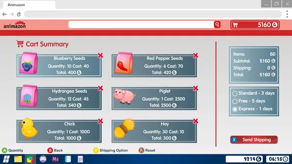 As the only inhabitant of your island, you’ll have to use a delivery service to better equip yourself. Fortunately, there is Animazon. With Animazon, you can purchase everything you need to succeed in your quest to become a successful small farmer.