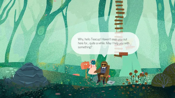 Most of the animals you meet will be glad to help Teacup… in exchange for a small favor or some help. Organize a (oddly shaped) market stall, win an underwater race and more!