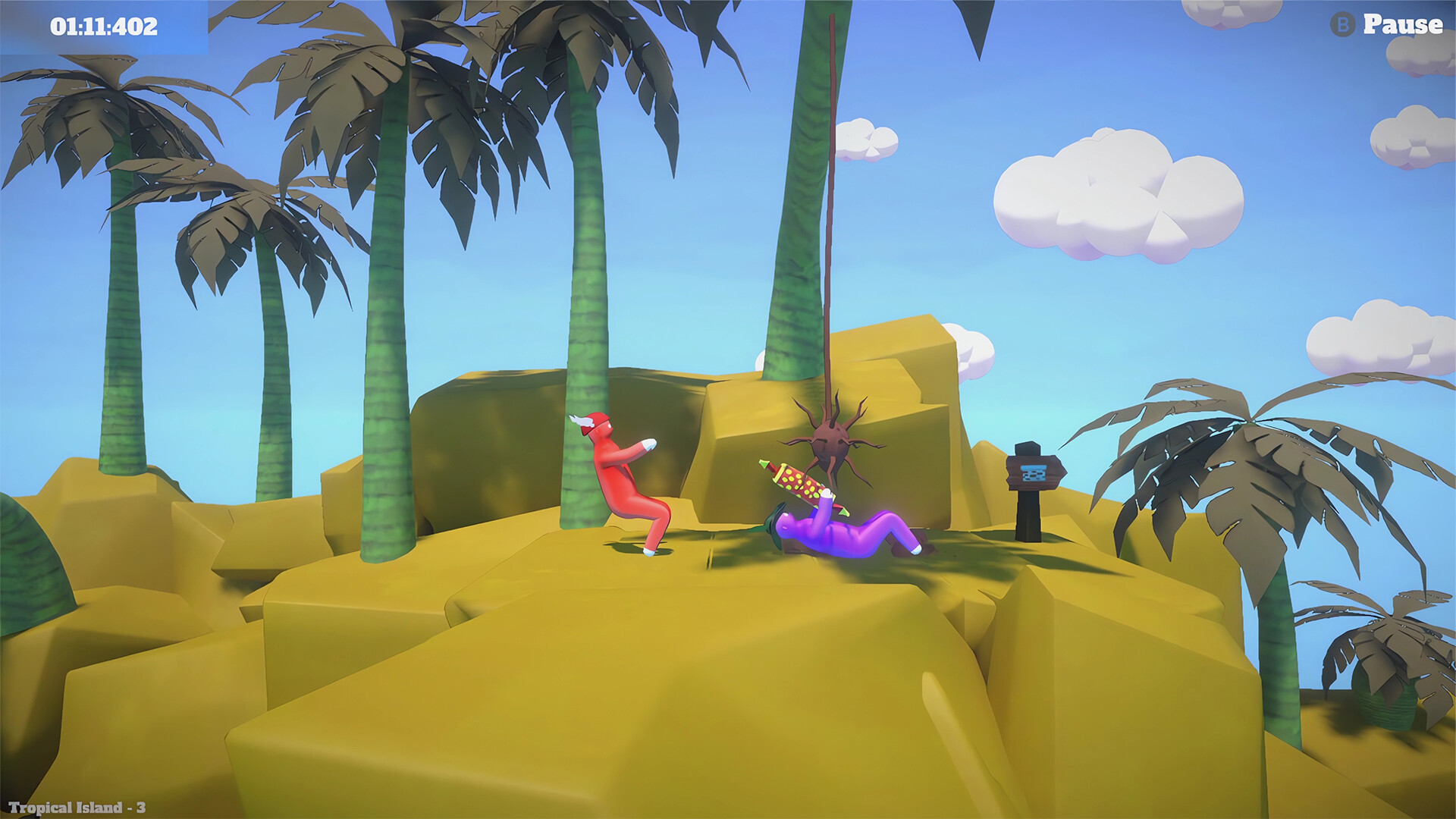 This game is a physics-based platformer. It consists of 40 levels of a platformer that can be played like one player or with friends up to 4 players and a variety of 12 arenas where you will fight with your friends as a team or against each other.