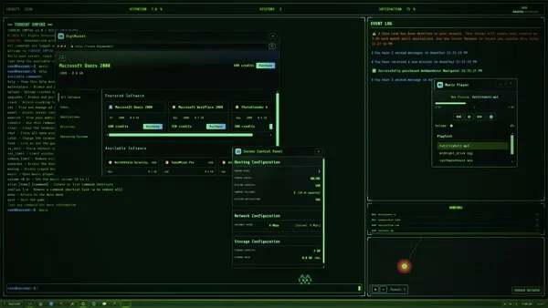 Torrent Empire is a terminal-based, immersive file-sharing site management and hacking simulator. Do you want to create and manage your own torrent site in the early 2000s? In this era when file sharing was just emerging, your goal is to crack newly released software, add them to your torrent site, increase your visitor count as much as possible, and leave a mark in the digital world. Of course, this requires careful planning.