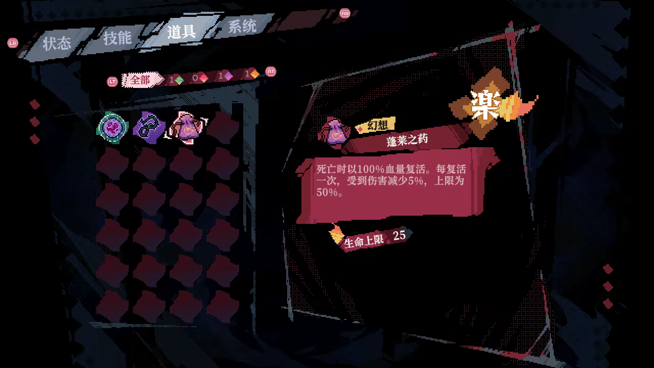 △ Choosing to play on low difficulty gives you by default an item that grants infinite revives. Nothing can stop you from finishing the game!