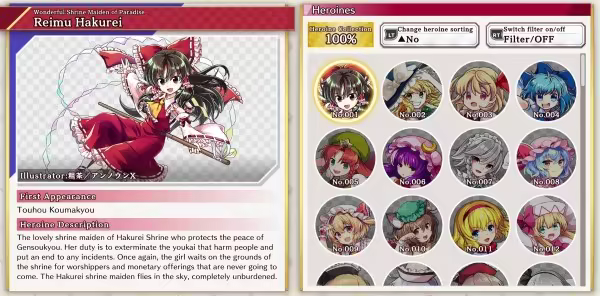 Two modes are available: the Story Mode, in which you can solve the mysteries of the destroyed Gensokyo through the Danmaku Kagura (rhythm game), and the Free Mode, in which you can play the rhythm game to your heart’s content.