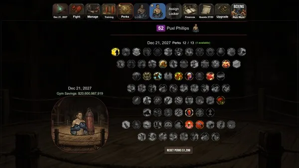 Perks are special abilities that enhance a boxer’s performance in different aspects of the game. These can range from increased stamina and power to improved defensive maneuvers or tactical advantages in the ring. As the manager, choose which perks to enable. Synergize perks with each boxer’s talents, weaknesses, fighting style, and the gyms overall goals.