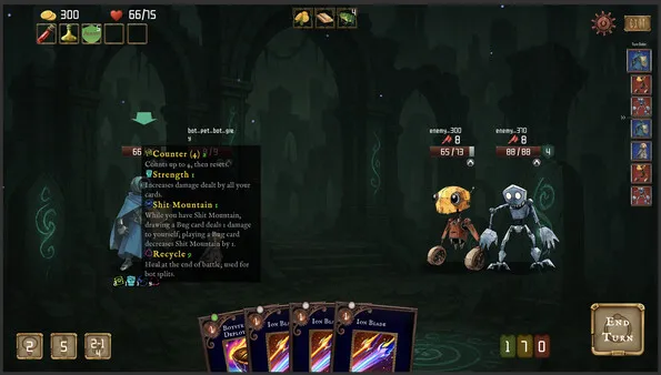 Adapt to unfolding situations as enemies react, minions act on their own, and your deck evolves throughout the run.