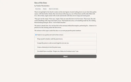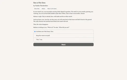 is an interactive novel by Natalia Theodoridou. It’s entirely text-based, 300,000 words, without graphics or sound effects, and fueled by the vast, unstoppable power of your imagination.