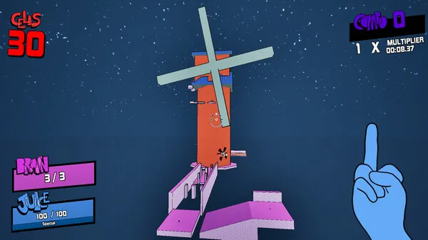 Utilize a variety of powerful weapons with many different effects. From a powerful, knockback-inducing shotgun, to an uppercut that sends you and your opponents soaring, to a middle finger that fires an immensely powerful laser, there’s an ideal weapon for any situation.