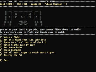 Warsim’s core focus is allowing the player to do whatever they want, with the relevant consequences of course (and perhaps we’ve gone too far in that aspect). Do you want to destroy the bank because you owe them a 1 gold loan, sure, want to imprison every musician who visits your court to disuade bards from visiting you, done, want to gamble and waste away all of your gold betting on scorpion fighting and dice games, yes, yes and yes! (If you want to learn more read below)