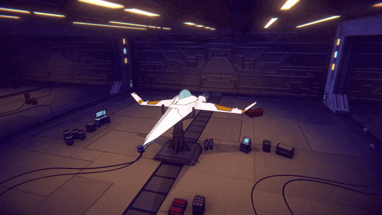 Design a fighter ship using randomized upgrades that can be built using scraps dropped throughout each level and Victory Points earned through play
