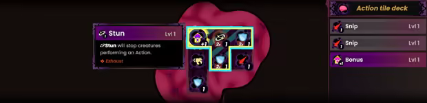 • A fresh take on exploration, replacing the typical roguelite node map with strategic, turn-based building using a set of tetromino-like virus blocks which you can evolve and reshape.