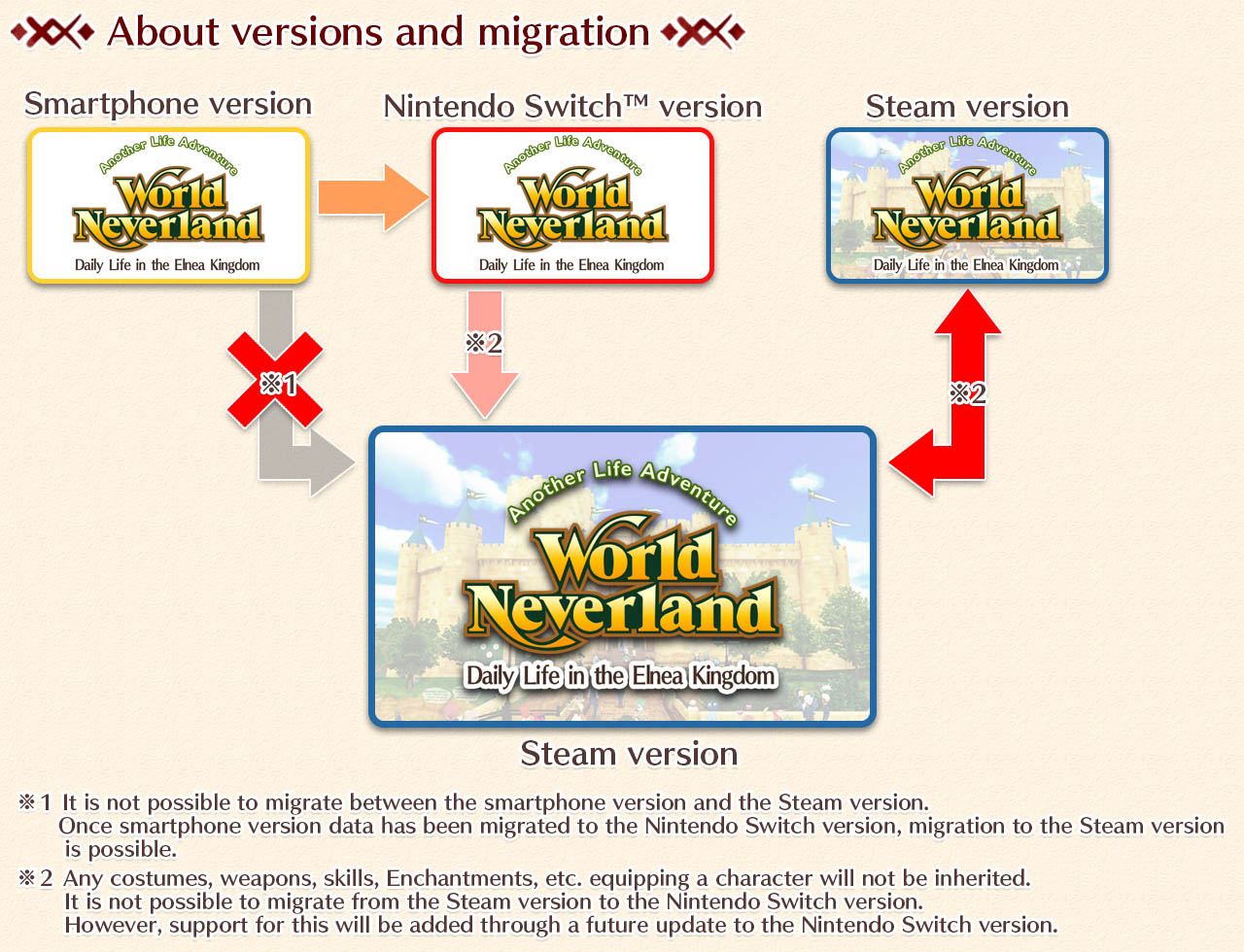 *Please note that importing and password migration from the smartphone version are not supported. However, you can use password migration from the Switch version or other WorldNeverland series games.