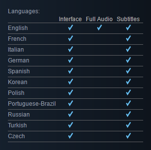 اللغات الموجودة في اللعبة ( اللعبة لاتدعم اللغة العربة )