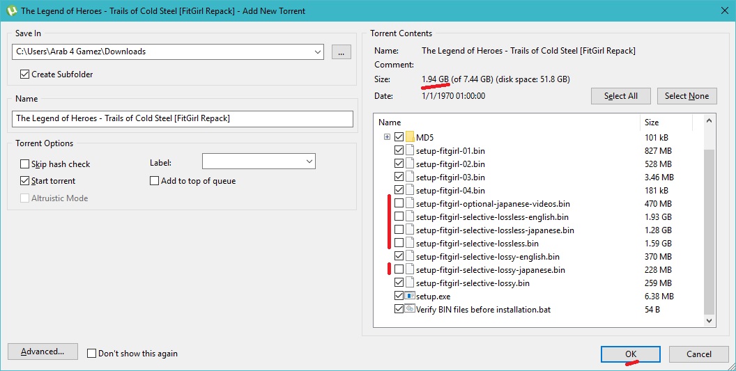 لتحميل اللعبة باصغر حجم من التورنت قم بحدف بعض الملفات على هدا الشكل
