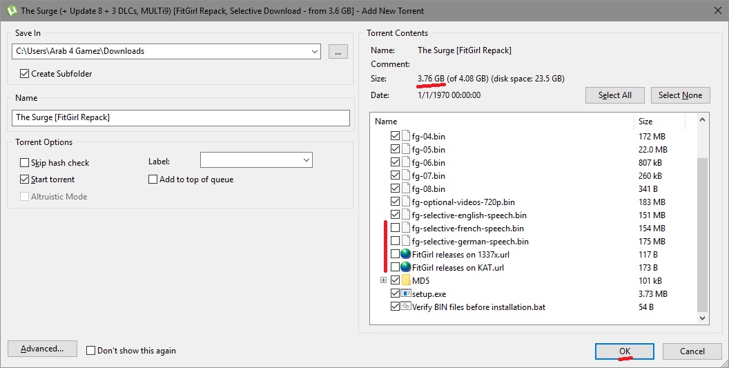 لتحميل اللعبة باصغر حجم من التورنت قم بحدف كل اللغات التي لاتحتاجها